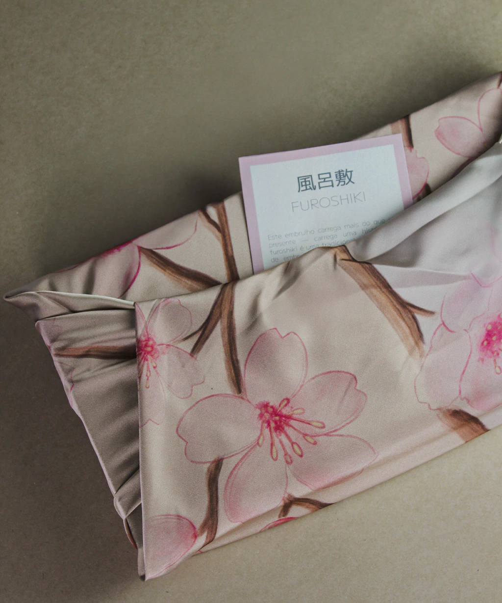 Em parceria com a marca de decoração Benivo Volare, desenvolvemos o Lenço Furoshiki, inspirado na técnica de embalagem milenar japonesa o lenço foi feito com estampa exclusiva pintada a mão.